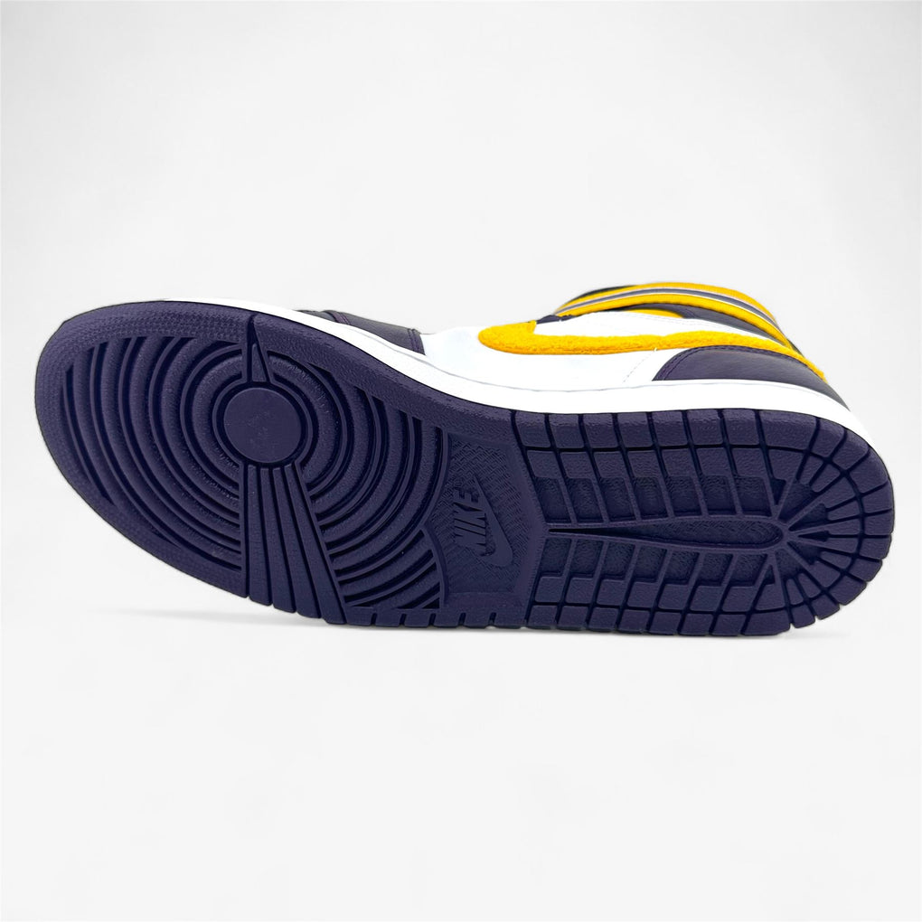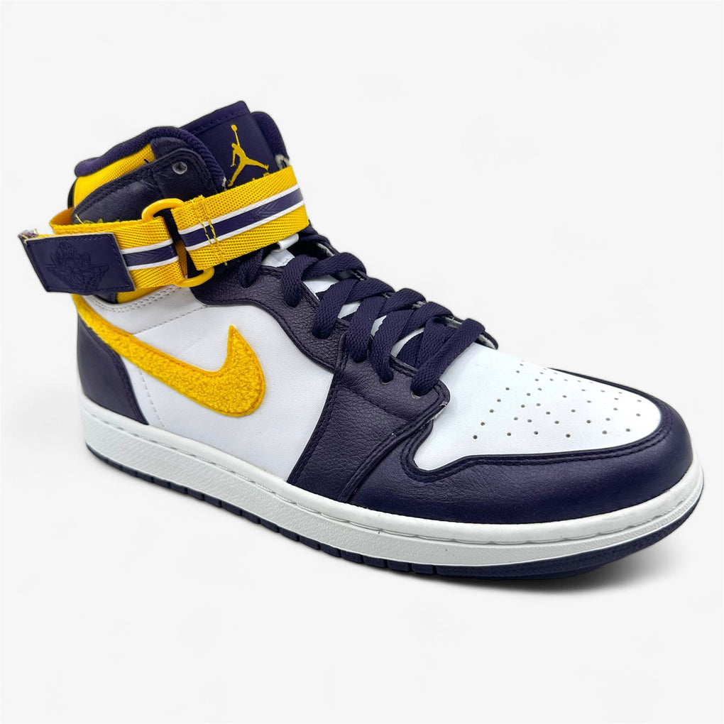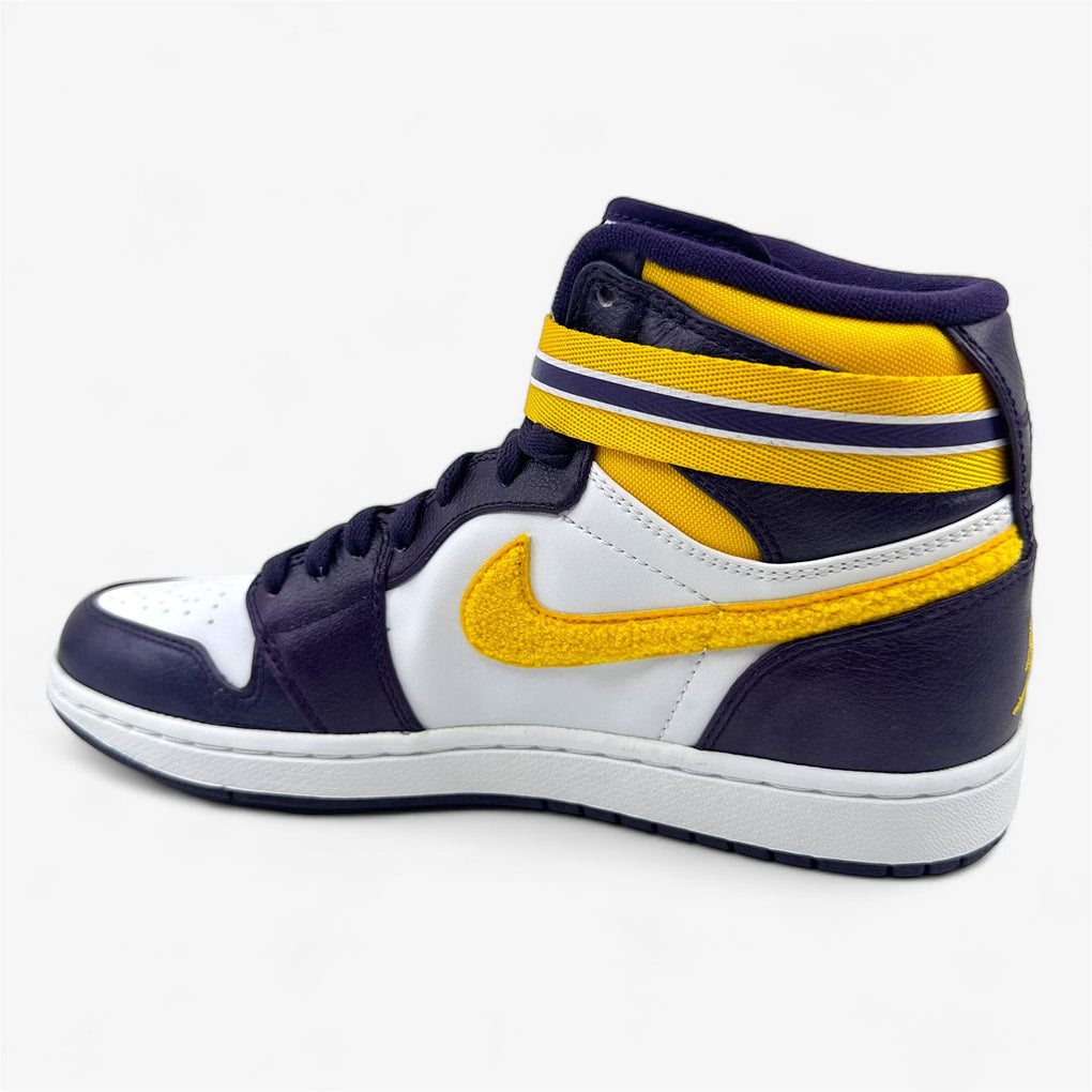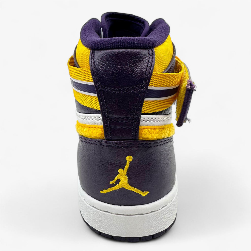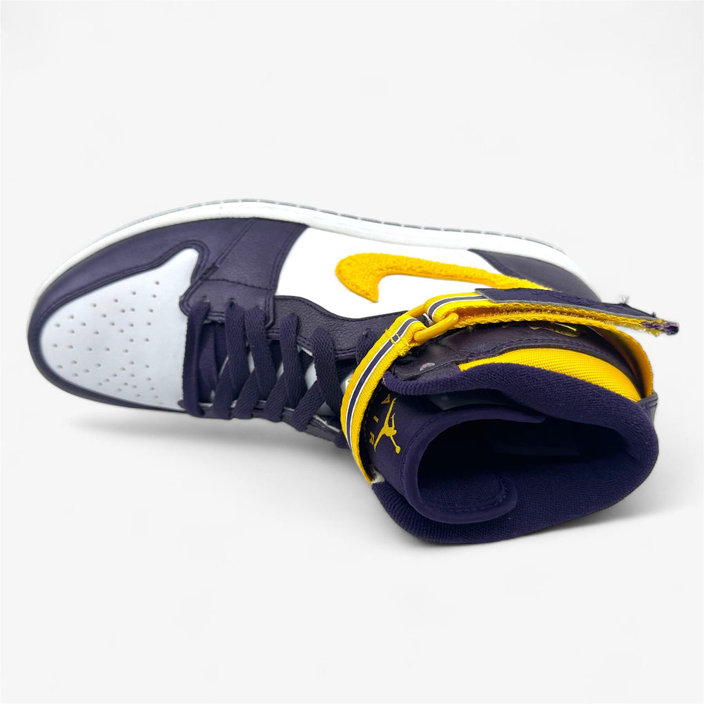 Jordan Air Jordan 1 High Strap Grand Purple Varsity Maize White Mens LA Lakers Sneaker