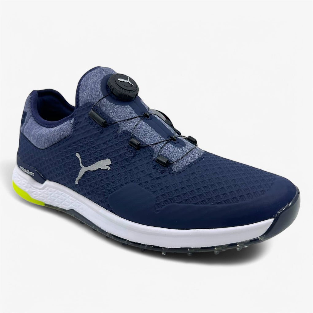 PUMA Proadapt Alphacat Disc Peacoat Silver Yellow Mens Waterproof Golf Shoes