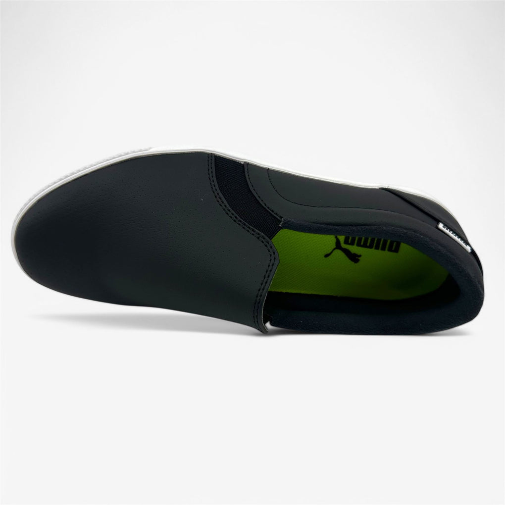 PUMA Tustin Fusion Slip On Black White Womens Spikeless Golf Shoes