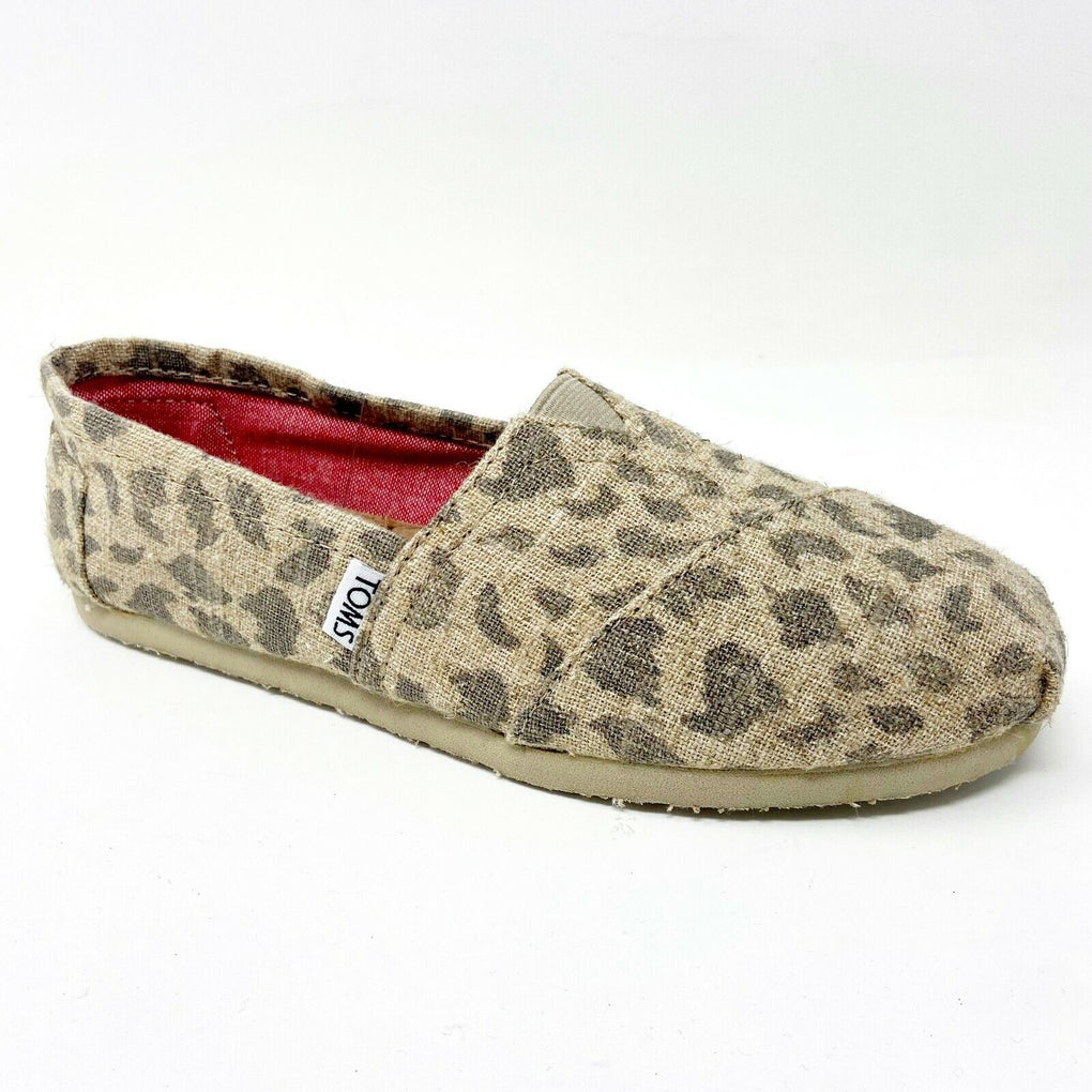 Toms Classics Leopard Burlap Womens Slip On Casual Canvas Flat Shoes